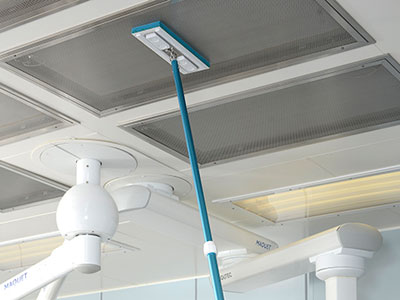 Limpiamos techos, incluidas vigas, listones, claraboyas, estructuras, tubos de refrigeración y extracción, etc… Para ello protegemos toda la parte inferior de la estancia y utilizamos productos no tóxicos y de rápida evaporación, concluyendo un resultado excelente.